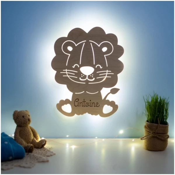 Véritable objet de décoration intérieur, la veilleuse en bois en forme de lion s’intégrera parfaitement dans l’univers de la chambre de votre enfant. Grâce à sa fabrication en bois naturel, la veilleuse saura trouver sa place sur le mur de la chambre de votre petit ange ! Vous pourrez par exemple l’entourer d’étagères agrémentées de peluches, de livres pour enfants ou de cadres photos !